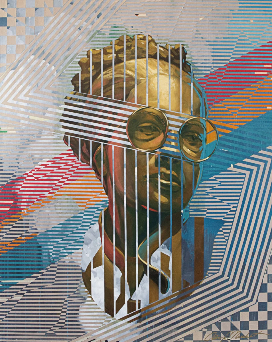 This painting series imagines a more accepting United States through the lens of athletics. Though sports such as basketball and stock car racing are largely masculine spaces in the U.S., there is clear opportunity for equal competition that showcases women and gender non-binary folks. If the same people who follow these sports also opened-up the field to a broader diversity of gender and ethnic representation, there may be decreased social violence, and an increase in strategy and diplomacy at large. Pattern motifs of quilts and chevrons allude to the American regions that merge sports with heritage, featuring herringbone traction patterns on tires and sneaks.